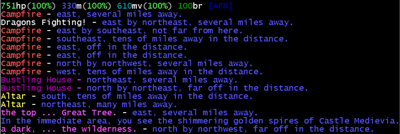 play on. NOTICE: ALL OF MY SCRIPTS REQUIRE THE FINAL RELEASE VERSION OF MUD MASTER TO RUN (v2.6.1). If you don't have version 2.6.1, please download it and any needed support files from the Mud Master homepage (click the image at the top of this page) If you have questions about one of my scripts, please post them on MM's discussion board, I check it multiple times a day typically. |